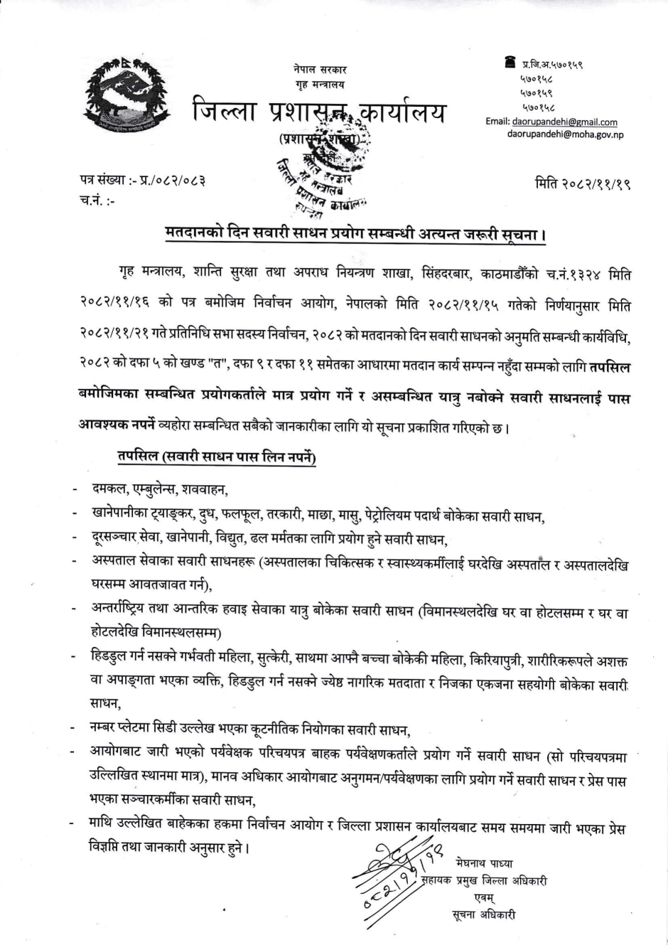 मौन अवधी शुरु हुने सम्बन्धी जिल्ला प्रशासन कार्यालयको सूचना ।
